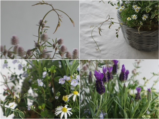 瑞々しい色合いと華やかな香りにこだわった旬の草花たちを束ねるように