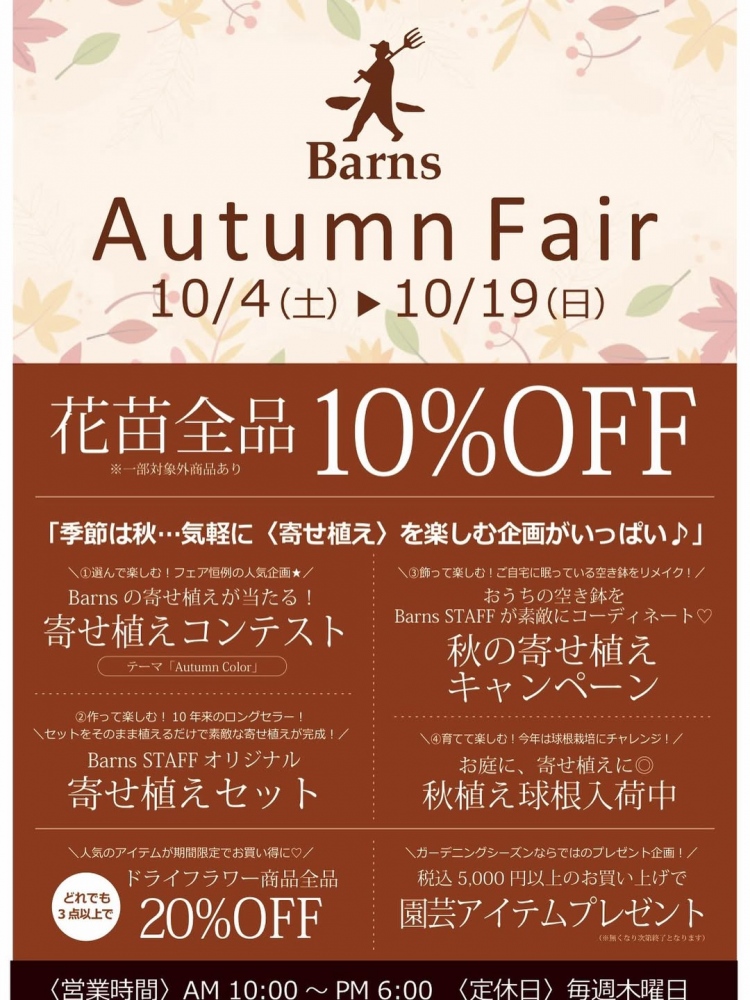 秋のお花やカラーリーフ。人気のハーブ、お庭にお迎えしたい低木類まで、花壇や寄せ植えにまとめて購入のチャンス!
